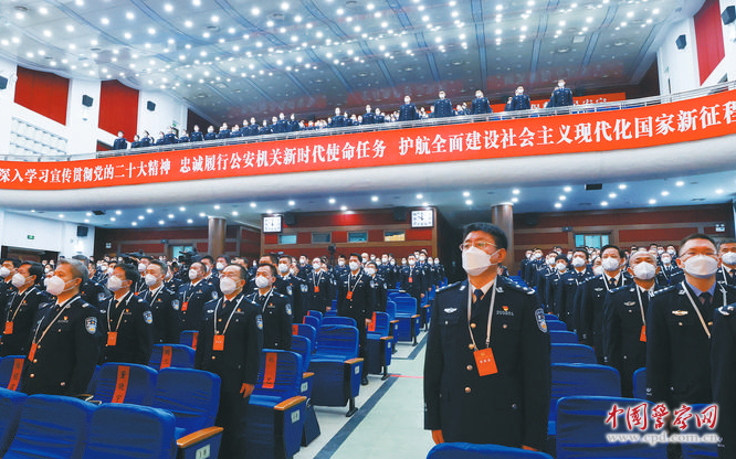 11月21日,全国公安机关领导干部学习宣传贯彻党的二十大精神政治培训班在北京举行。图为授课前,全体参训学员共唱国歌。本网记者温凯摄