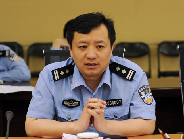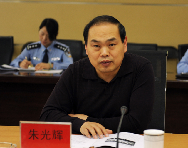 新乡市公安局党委副书记、常务副局长朱光辉与参会代表交流
