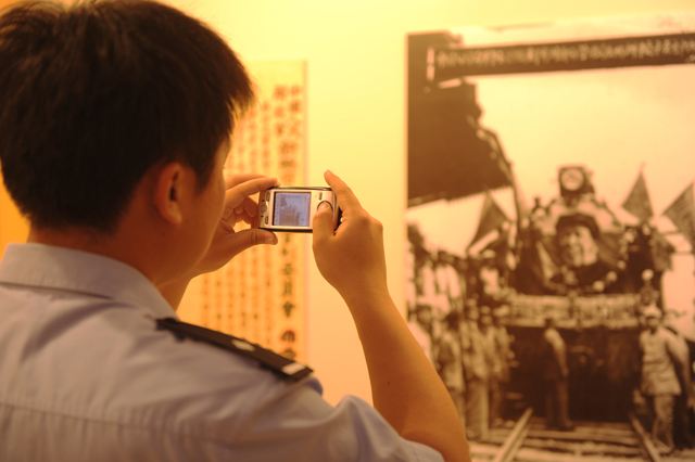 一幅幅生动的历史画面引来民警纷纷拍照留念