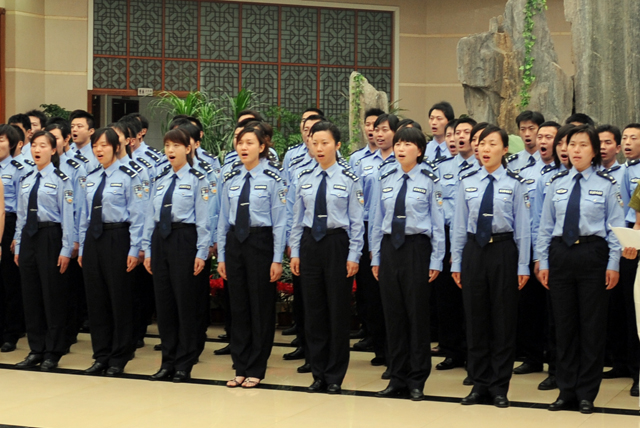 6月3日下午5时,新乡市公安局参加省厅“河南公安之歌”演唱团在市局多功能报告厅里排练的如火如荼,来自全市警种部门的80余名民警全身心的投入到激昂铿锵的旋律当中。新乡市公安局领导朱光辉、刘好生、石秀田、张辉国看望慰问了合唱团全体队员,在观看节目排练后,朱光辉对合唱团在一个多月来辛勤努力所取得的成绩给与了充分肯定,并作出“争取获奖”的批示,以鼓励全体合唱团的民警。