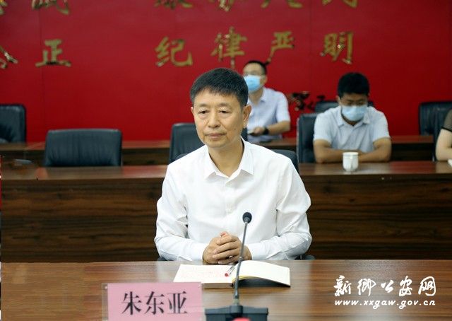 朱东亚同志在讲话中表示坚决拥护、绝对服从组织决定,衷心感谢组织的培养教育、信任厚爱,将用忠诚来回报、用担当来感恩,在市委、市政府和省厅党委的坚强领导下,团结带领全市广大公安民警,继续传承弘扬新乡公安的好传统、好作风,接续奋斗,奋力开创新乡公安工作新局面。将始终把筑牢政治忠诚作为第一生命线,学深悟透习近平总书记一系列新思想、新理念、新战略,坚定做到“两个维护”,确保全市公安工作和队伍建设始终沿着正确的方向前行。将始终把忠诚履职作为第一担当,牢固树立大局意识、整体观念,自觉将公安工作置于全市经济社会发展的大局中谋划推动,恪尽职守,忠诚担负起捍卫国家政治安全、维护社会安定、保障人民安宁的职责使命。将始终把服务人民群众作为第一要务,全面落实新时期公安工作的群众路线,着力保民安、纾民怨、解民忧,忠诚践行人民公安为人民的庄严承诺,崇尚法治精神,坚持法治思维,善用法治方式,坚守公平正义。将始终把廉洁从警作为第一保障,严守政治纪律和政治规矩,时时处处守住廉洁底线,严以修身、严以律己、严以用权,切实履行好全面从严管党治警主体责任,抓好班子、带好队伍,特别是当前防疫情、防汛情、防火灾重任在肩,更要冲锋陷阵,彰显担当,奋力谱写新乡公安工作高质量发展的新篇章。